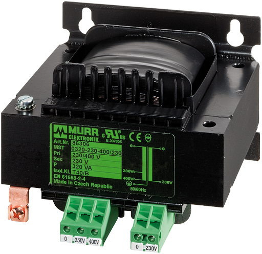 MST 0320-230-400/230 Transformateur monophasé, Classe d'isolement T40, 230-400VAC, 230VAC, 320VA / Murrelektronik