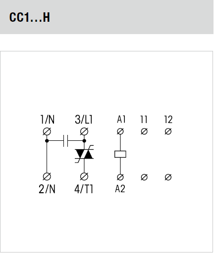 CC1H250 | Contacteur à semi-conducteur monophasé, Tension nominale = 230 VAC, Courant nominal = 50 A, largeur = 90 mm / COMAT